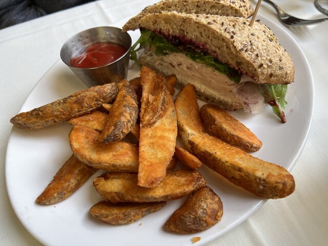grilled cheese sandwichに自家製ポテトチップスを注文。キャラメライズオニオンが美味しいです。