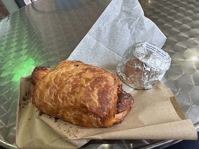 ブランチがてら、空港に向かう途中でNormandy Farm Artisan Bakeryへ。ハム&スイスクロワッサンとソーセージとチェダーのビスケットを購入。
