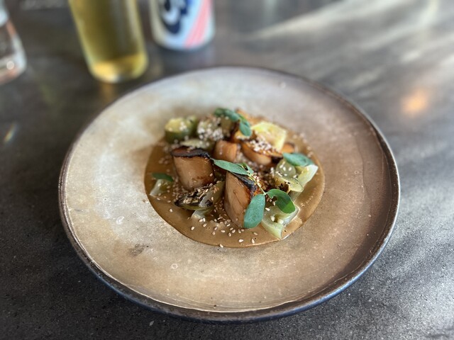 前菜をスクアッシュのサラダ。こちらはグリルした野菜の甘味を気持ち辛めソースで和えたもので美味しいです。