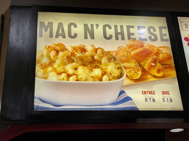 Mac ‘n’ Cheese すなわちマカロニ&チーズは、アメリカの家庭の味、子供大好き、な大定番メニューです。マカロニをとろとろに溶かしたチーズに絡めたもので、それ以外の食材が一切入らないのが普通。