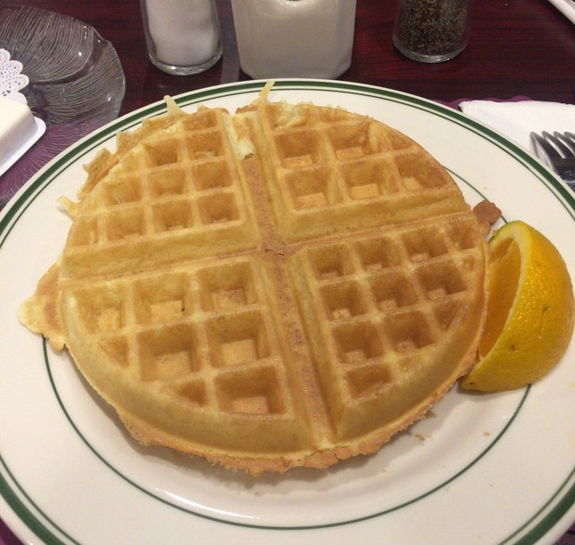 ナイフとフォークとワッフルで、アメリカの素敵な朝食。