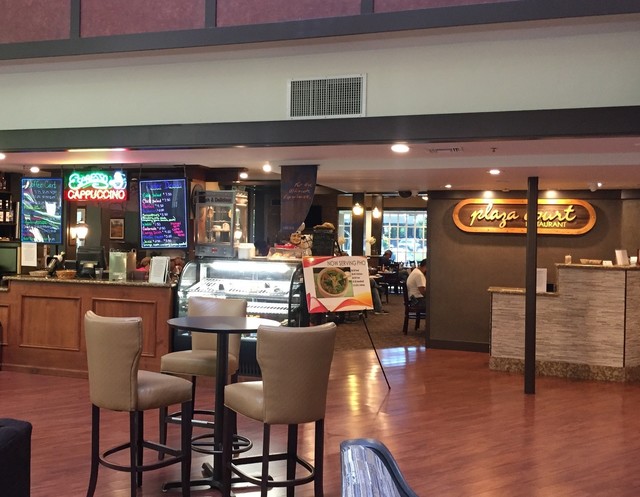 ホテルの1階にはそれなりに立派なレストラン「Plaza Court Restaurant」があり、<Welcome★>と書かれた黒板には、
