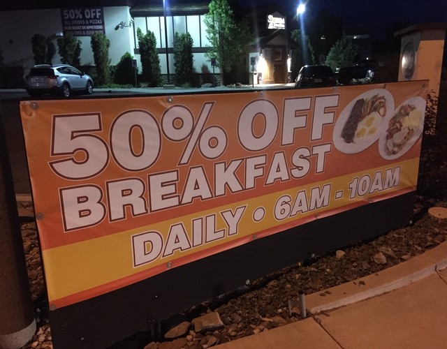 毎晩の散歩で見かける看板が気になっていた、24時間営業で<朝食が50%OFF>のお店に独りで行ってみますね♪