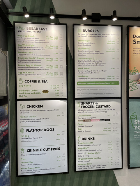 『Shack Burger Single $6,89』 『French Fry $3,49』 『Drip Coffee $2,49』