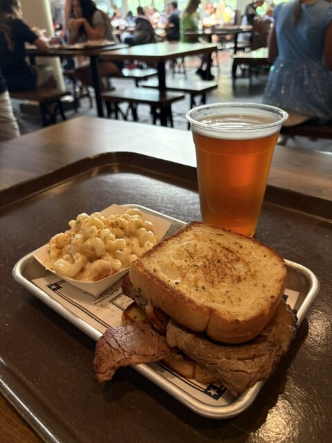 『Sliced Texas Beef Brisket Sand & Mac Cheese $14.99』 『Samuel Adams Biston Lager $12.25』