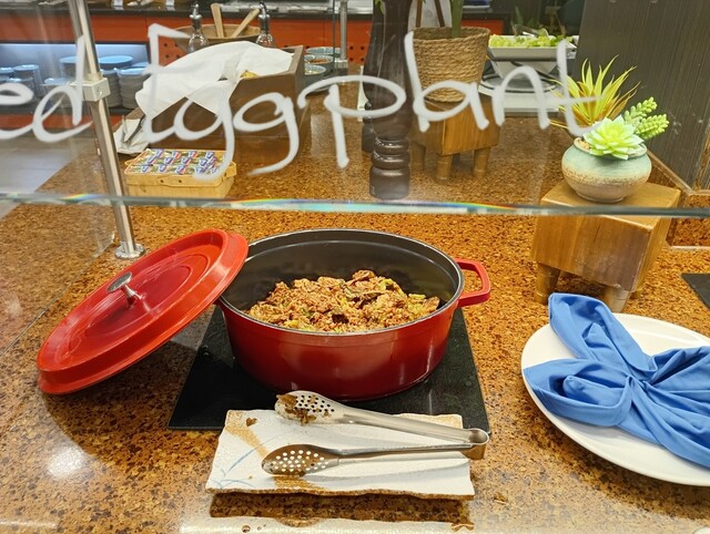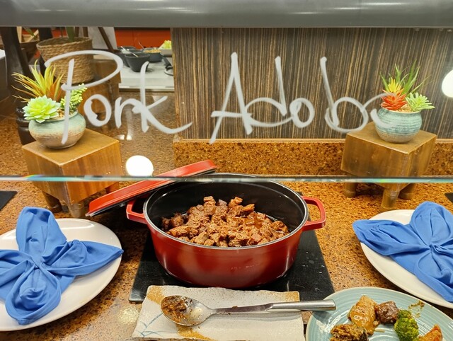 その他ローストチキン・ポークリブ・ベイクドサーモン・ツナポキ・コーンコブ・レッドエッグプラント(茄子)・フィリピン料理のポークアドボ・鯰の仲間バサフィッシュの煮物などで、牛肉料理はビーフ&ブロッコリーだけだったような。