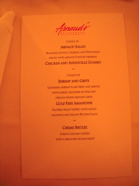 前菜はチキンとソーセージのガンボスープ、メインは海老のフライ、デザートはクレームブリュレなどを食べましたが、なかなか美味しかったです。