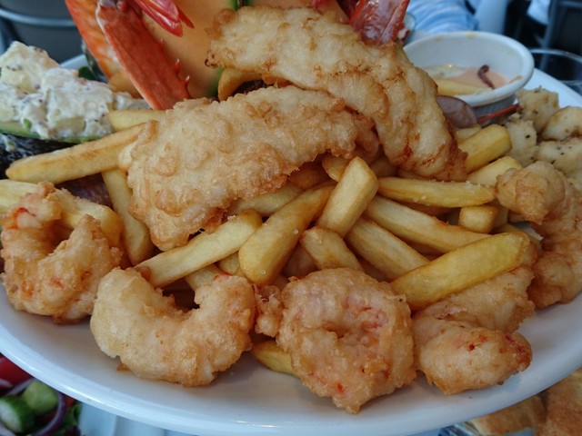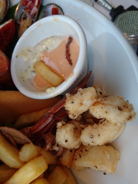 後ろ側には白身魚、海老、イカのフリッター、ポテトフライ。