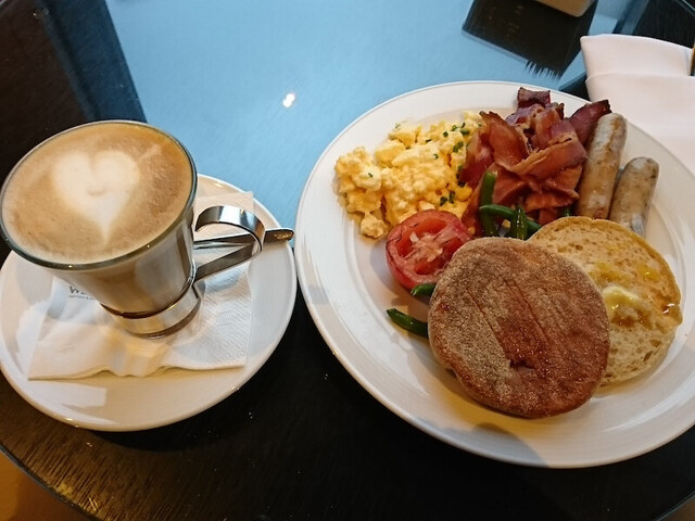 ホテル28階にあるクラブラウンジでの朝食。朝食は6:30~10:00の間にいただく事ができます。イングリッシュマフィンでサンド!美味しくいただきました。ごちそうさまです。