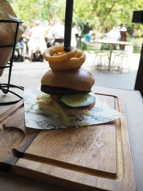 シドニー観光の途中のランチ、何を食べようかと夫婦で相談。シドニーなら「オージービーフでしょう」と肉料理を楽しみに出かけたのは、ホテル近くのショッピングセンター「Central Park Mall」。建物全体が植物で覆われている緑あふれるモールです。