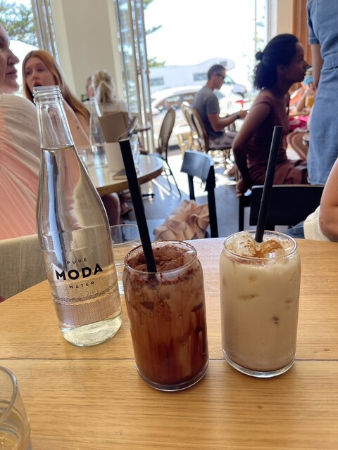 朝ご飯をこちらのカフェでいただくことにしました。量が多いと聞いていたので、3人で2つの料理とドリンクを各自注文しました。