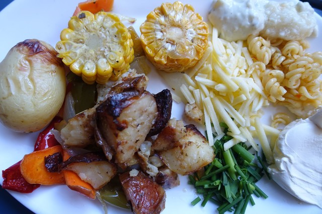 サラダバー隣にあったジャガイモのローストは結構おいしい。本日一番のお皿です。