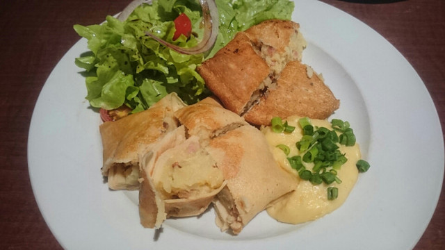 中はじゃが芋とベーコン。コロッケみたいな味。こっちも$16くらい。