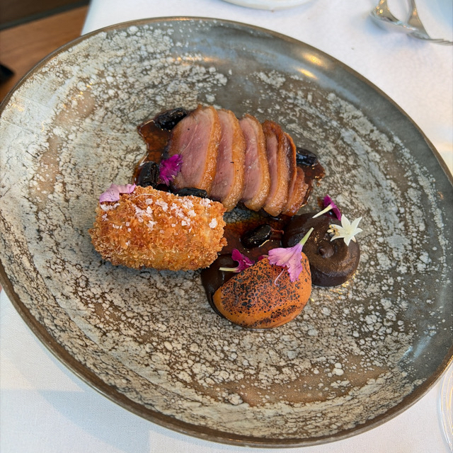 DOWN LAMB、妻はパスタにパプリカが入っていたのでSHANGRI-LA HONEY GLAZED DUCK BREASTにして、メインは同じくKINROSS STATION HAMPSHIRE