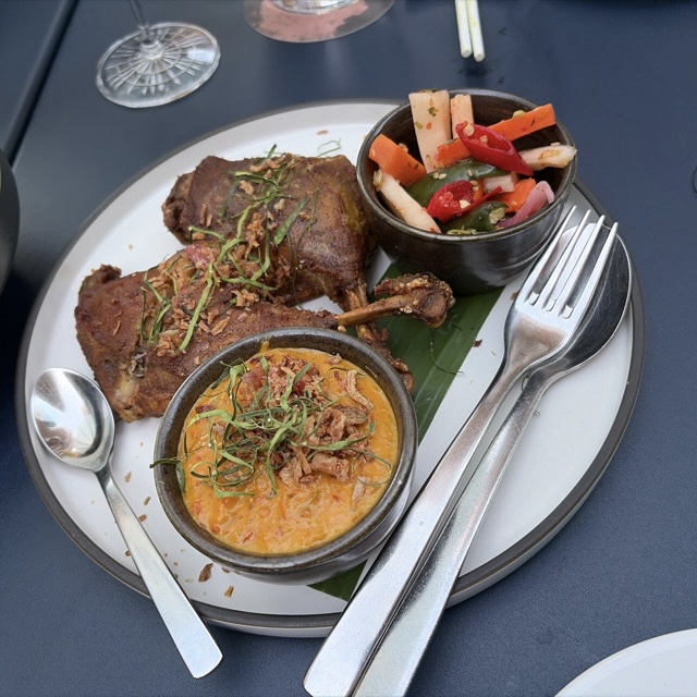 二度揚げした鴨もも肉、スパイシーココナッツ、レモングラス、カフィールライムのレマックソース。 スパイシーな北京ダックなのかと思ったら、スパイシーなコンフィーな感じだった
