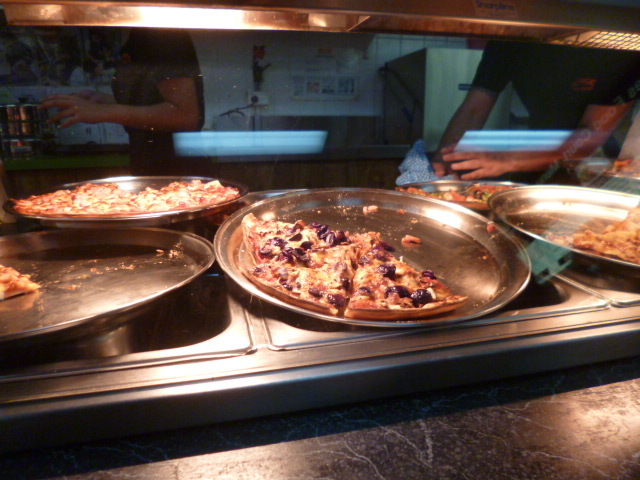 ピッツァのコーナー、1枚3$くらいでお安い、どんどん売れています。