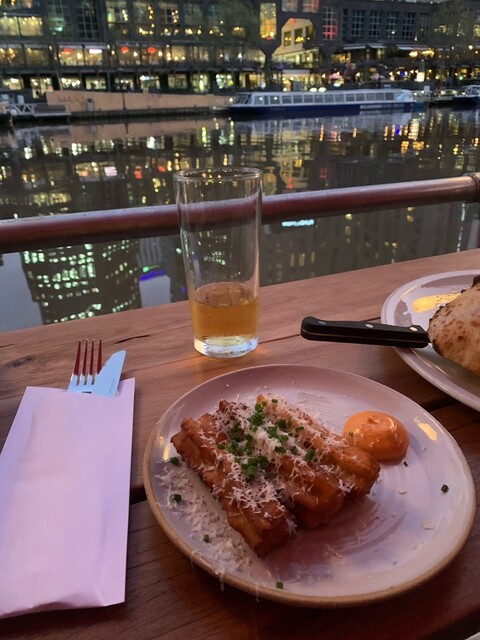 とにかく雰囲気が良く、屋外の川沿いで夜の街並みを眺めれました。