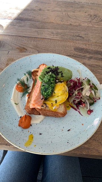 朝食・ブランチで話題のお店ということで行ってきました。パンケーキも食べたかったのだけど、やはり朝から甘いものというよりはちゃんとお食事したかったのでタンパク質多めのものにしました。スモークサーモンは生と焼きの半分くらいの状態でとろっとしていておいしく、アボガドはフレッシュで、ポーチドエッグもちょうど黄身がとろーりとろけてくるくらいで全てがうまかったです。ブリオッシュも甘すぎくなくて、お食事にぴったり!周りにかかっているソースでうまく味を調整する感じで、少し味がきつめでした。それでも美味しい!