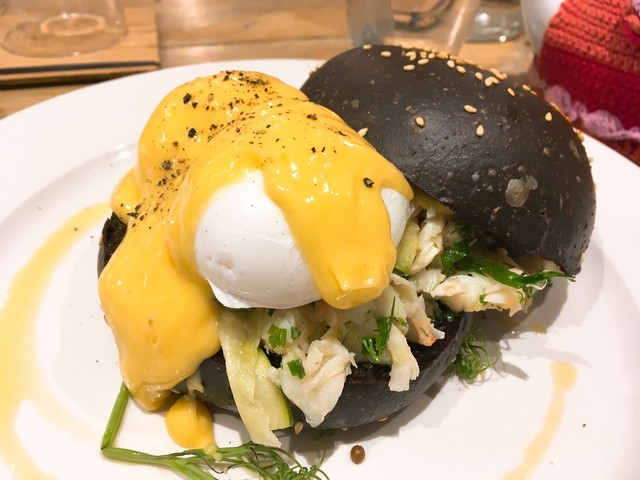 キャセロールで提供されるグリルドエッグは、チョリソーにとろとろたまごが絡んでアツアツ。