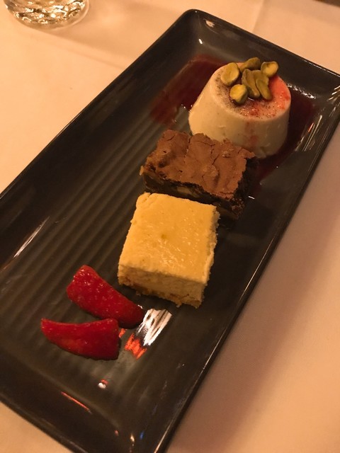 ピスタチオパンナコッタとブラウニーとチーズケーキ。普通ですね。もう一捻りほしいところ。