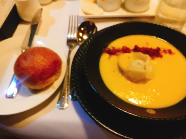料理はコース料理で、一品ずつ丁寧にサーブしてく...