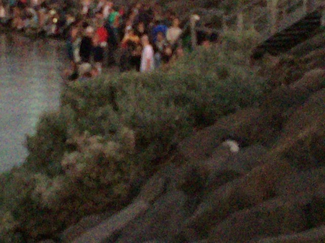 ボランティアの方が赤い光でペンギンを照らし教えてくれます^_^