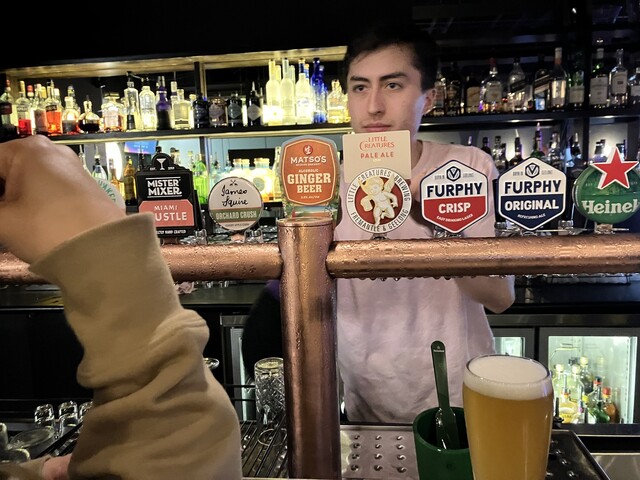 テーブルに座って持ってきたカードゲームをしました。何も頼まずに座れたのでとりあえずビールを頼みに行きました。