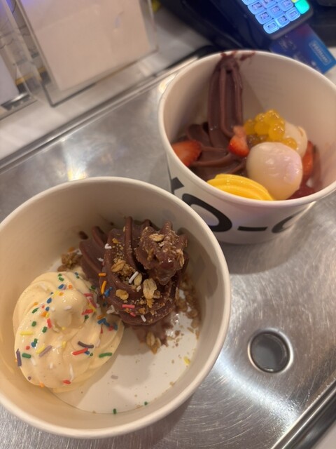 私はアサイーとバニラを選んでカラースプレーチョコをかけました。