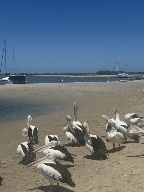 食後はカフェの目の前にある Harley Park まで歩きました。ペリカンの餌付けタイムを鑑賞。