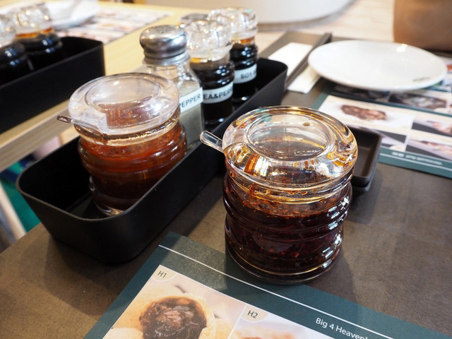 食器類は、陶器のもの。香港では、プラスティック製のものですが、ちょっと高級感があります。そして、香港ではないので、食器をボール入れて、熱湯消毒して洗います。「洗杯」の儀式はありません。各種調味料もセットされています。丁寧にラベルが貼ってあるので、中身が何かわかります。