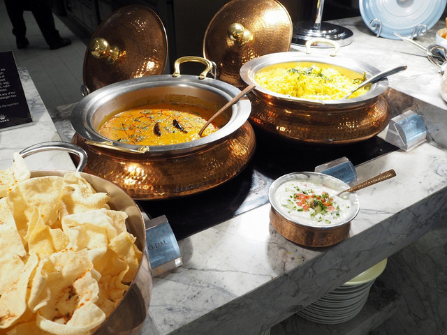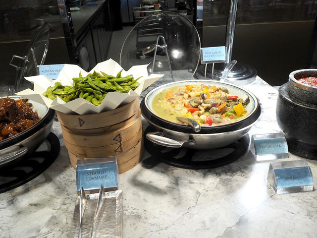アジアンには、中華料理、韓国料理が数品、インドには、べジ・ノンべジのカレーの他、タンドール料理、サンバル、パパド、バスマチライス、ナンなど充実。ローストエリアには、牛、豚、鶏、西洋料理には、肉魚料理が並ぶ充実度。写真をすべて撮るのが難しいほどでした。