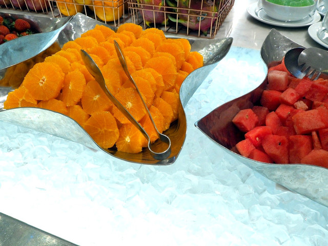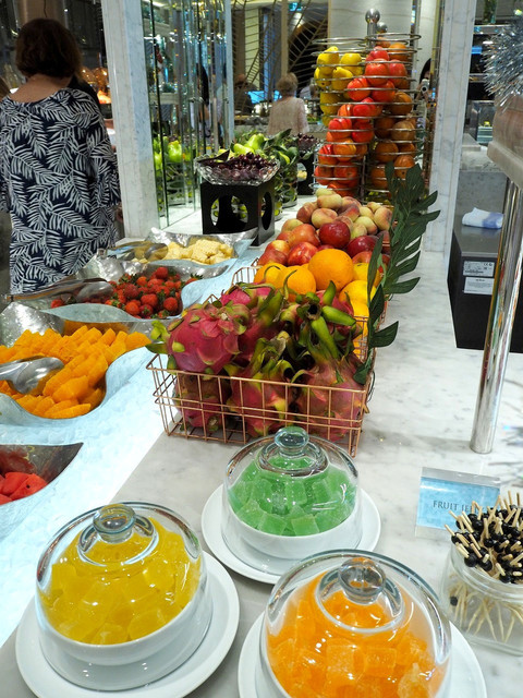 フルーツは、食べやすいようカットされたものもありますが、りんご、ドーナッツピーチ、ドラゴンフルーツ、オレンジはホールで置かれていました。食べにくいのですが、ホールのフルーツも魅力的!