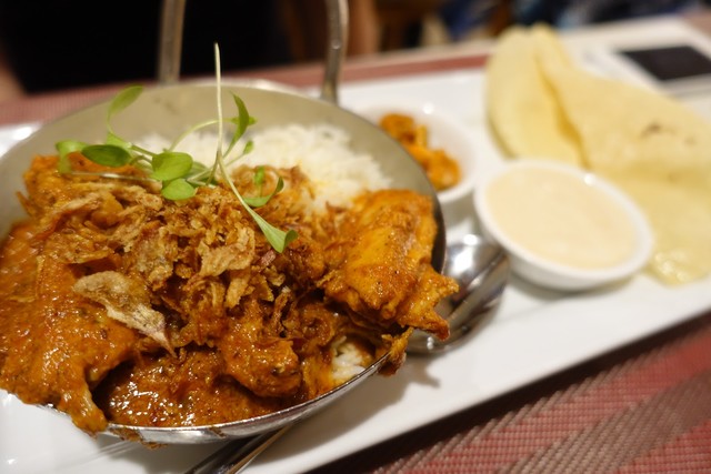 妻は「本日のカレー」を注文。当店のカレー、中でもチキンカレーはそのスジでは中々に有名であり、運良くこの日のカレーはチキンカレーでした。一口頂きましたが、なるほど堂に入ったバスマティライスにスパイスが織りなす深みのある味わい。東京で1,500〜2,000ぐらいで提供されている本格的なインドカレーの味わいに迫る美味しさでした。