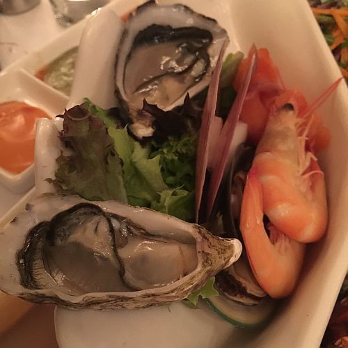 オイスターももちろん生。日本の牡蠣よりもちょっと小ぶりでしたが、こちらも美味しかったです。オーストラリアのちゃんとしたレストランなので、生モノもOK!