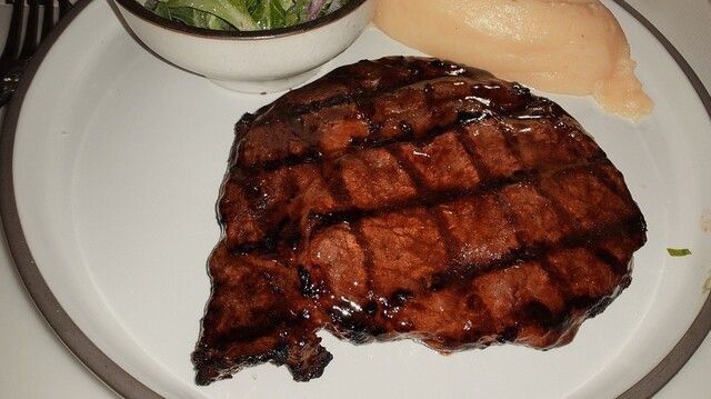 〇リブステーキ280gで付け合わせにマッシュポテトをチョイス
