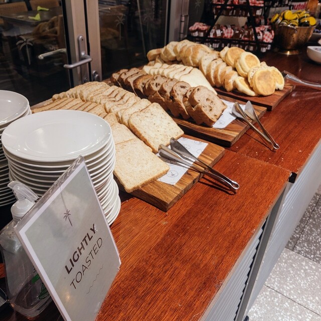 ホテルは海沿いの"シャングリ・ラ ザ・マリーナ ケアンズ"でした "HIS"で"朝食付きのコース"にしたので1Fにあるレストラン"THE BACKYARD"のビュッフェでした♥