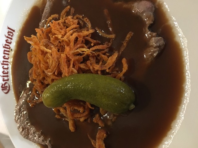 絶対食べたかったクレープのスープとキノコのクリームスープ、カツレツ、オニオンフライの乗ったステーキ(名前が覚えられない)を注文。