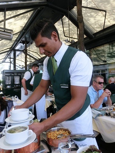 テーブルに料理が並べられた後、ウェイターがまずスープをよそってくれます。