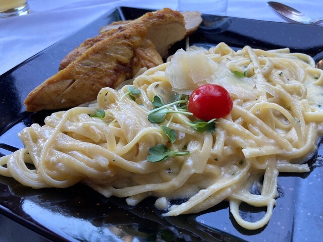 ハルシュタットの湖畔の小綺麗なホテルの中のレストラン。外のテーブル席ごオススメです。景観の素晴らし里、静けさ、美味しい料理が楽しめます。総合点だは最高。ビールに始まり、2種類のパスタと魚介スープ、最後...