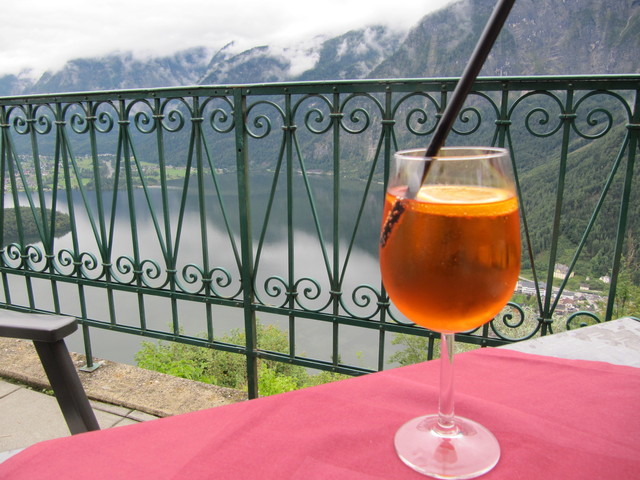 ハルシュタットの高台にあるお店です。徒歩で山を登って行く事もできますが、町中にあるケーブルカーを利用すれば楽です♪