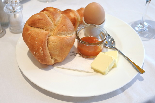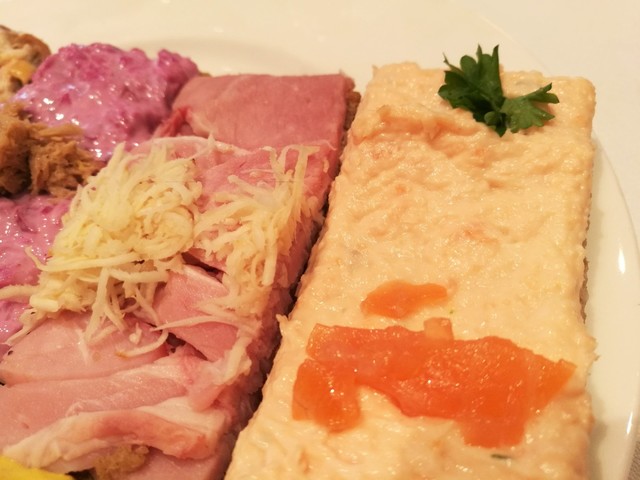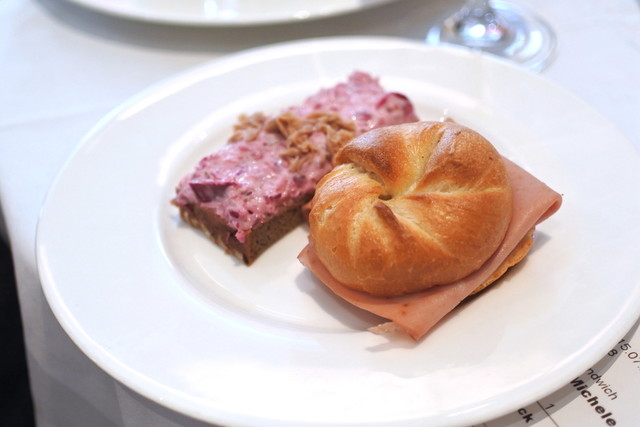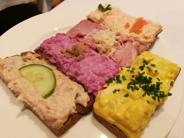 • Zum Schwarzen Kameel - 左はベートーヴェンも食べたという特製ハムと西洋わさび2.3ユーロ、右はまろやかなサーモンクリーム1.45ユーロ
