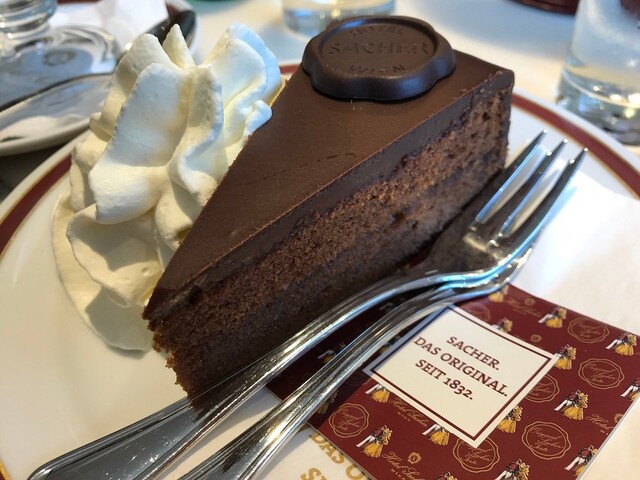 世界一有名なチョコレートケーキは発案者ザッハーの次男が創業したホテルのものがでオリジナル。中に杏ジャムが挟まれ...