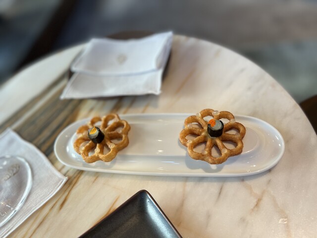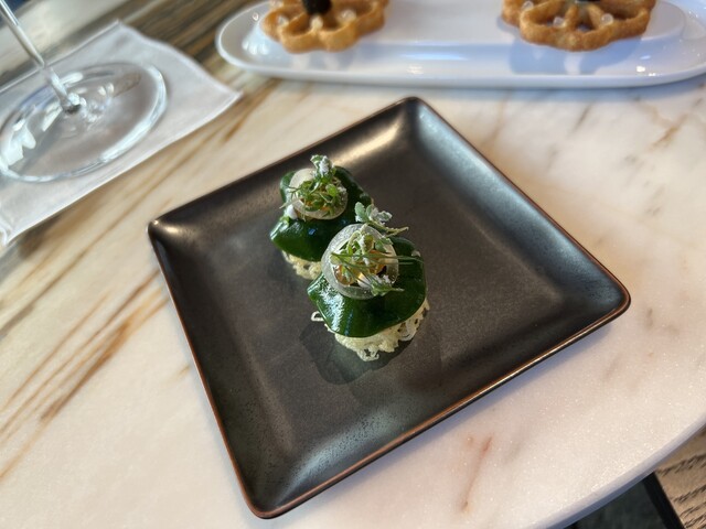 まずはラウンジに通され、アミューズを5種類。梅干し、昆布...