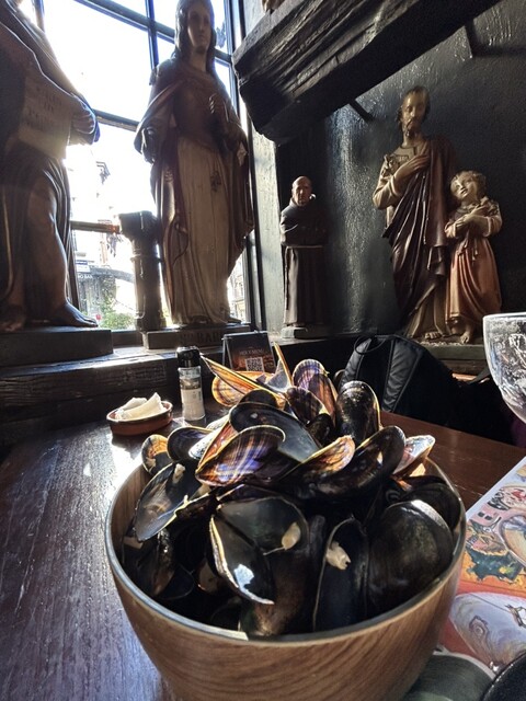 ビアホール的なものだったが、お酒は飲めないので自分はベルギー名物のムール貝の鍋だけ食べた!29ユーロほ...
