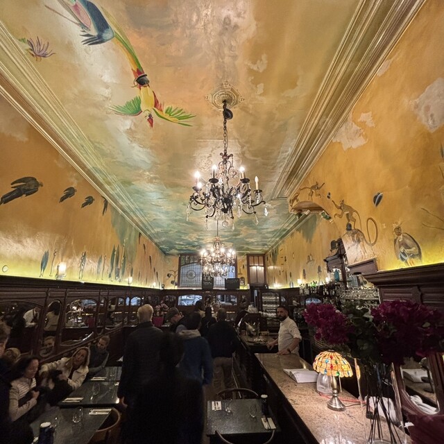 こちらのレストランは天井や壁に絵画が描かれており、古き良き時代のヨーロッパのレストランという趣のある内装になっていました。