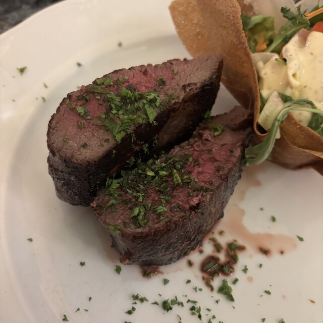 前日に続いて「ムール貝の白ワイン&クリーム蒸しとフリッツ」と本日はヒレステーキをいただきました。