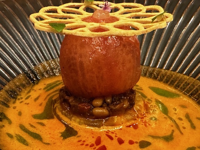 料理のほうはフレンチの経験値は高くないので技術的な凄みは分かりませんし、海外なので特に野菜など何なのか分からないまま食べていましたが、一皿一皿全体の調和を考えた料理が美しく盛り付けられており、また夏だからか爽やかな味付けが多くポーションも小さめだったので最後のデザートまで美味しく頂けました。