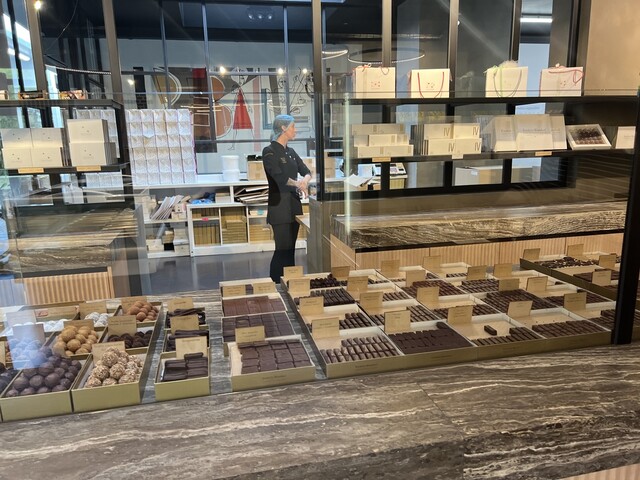 工房、ショップ、カフェ、アイスクリームが販売されており、20種類のチョコレートを購入。