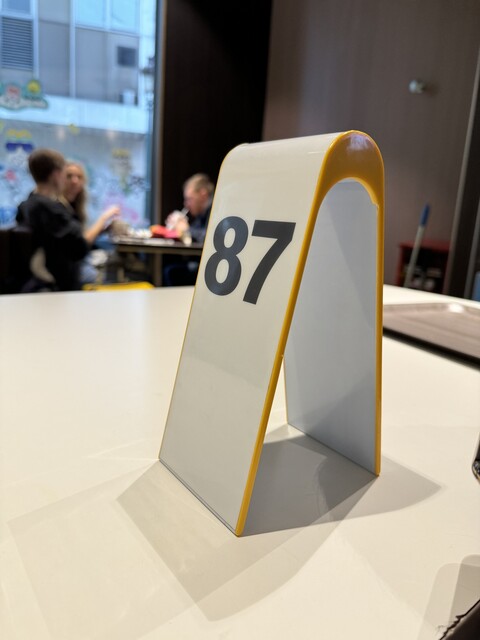 注文確定時に、機械の脇にある番号札を自分で取って、その番号を自分で機械に入力します。タッチパネル内に案内は出ていますが、ここはちょっと分かりにくいかもしれません。