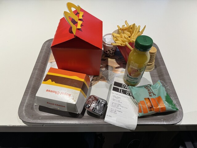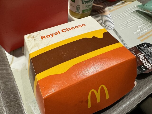 息子はハッピーセット、私は「ロイヤルチーズ」という、日本では見かけない名前のハンバーガーのMセットにしました。